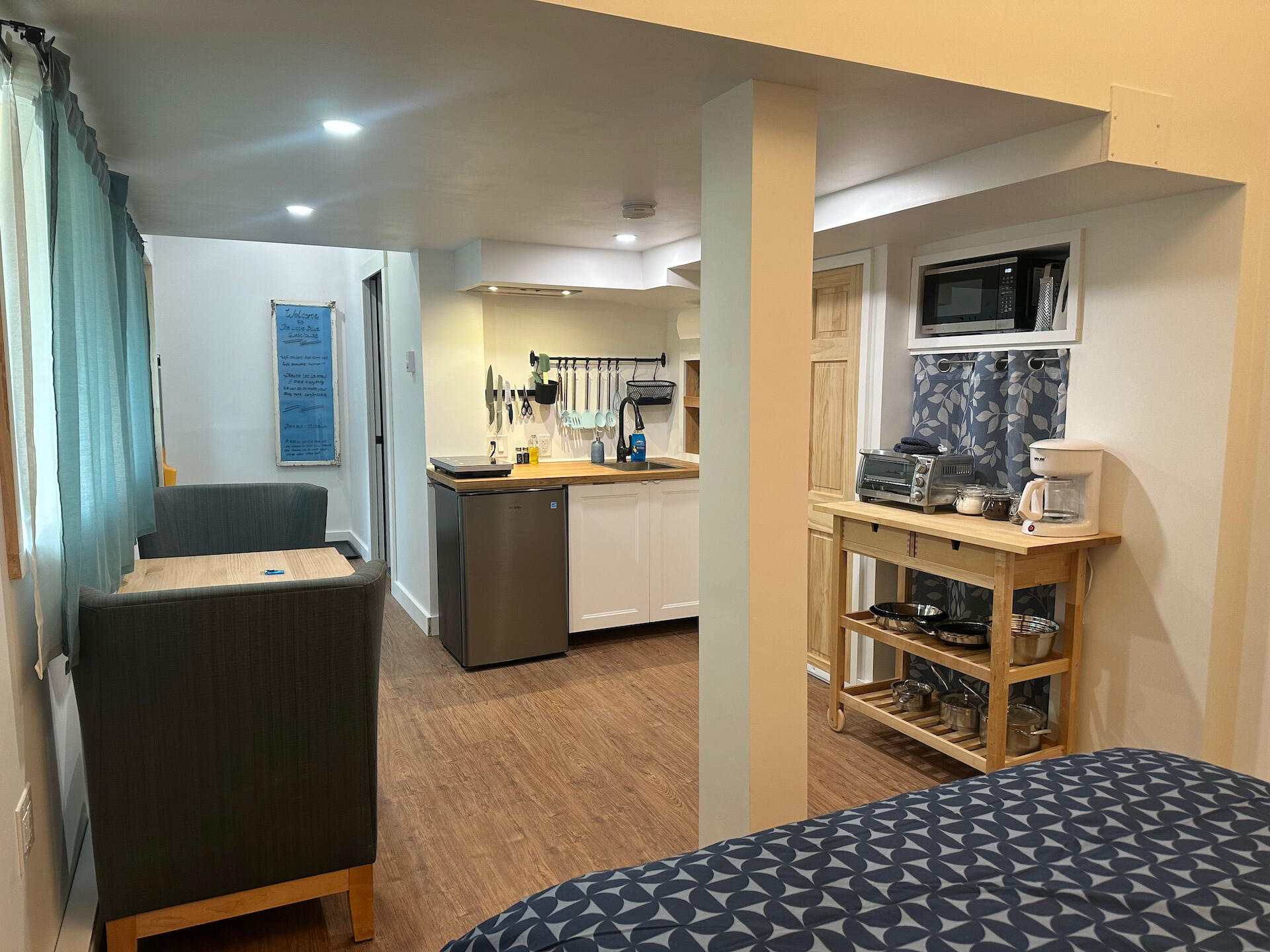 Welcome to the The Little Blue Guesthouse located in Yoho National Park, Field B.C. The brand new ground level studio suite is well lit with private access. The suite has one Queen sized bed ideal for a couple or a solo traveller. A well stocked kitchenette and 3 piece bath with a spacious shower should provide everything you will need for a comfy stay in our quaint village in the Canadian Rockies.